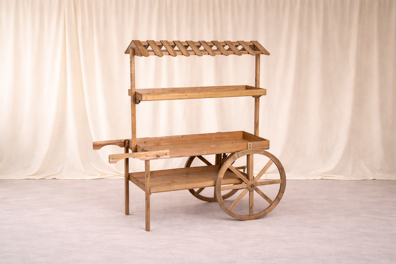 Ce chariot bois sera idéal pour un mariage, un baptême, une baby shower ou tout autre événement. Utilisez-le comme bar à thème (bonbons, pop-corn, barbe à papa, boissons, cookies, bières…)